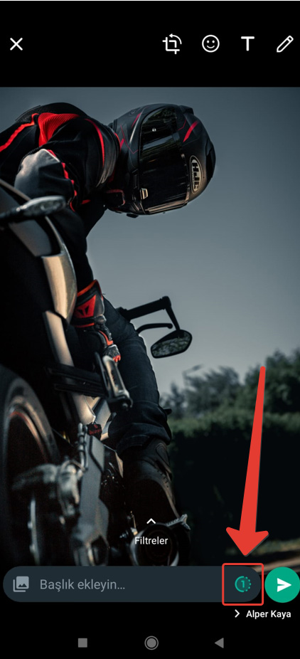 Göndereceğimiz fotoğraf veya videoyu seçili hale getirdikten sonra gönder demeden önce “gönder” butonunun solundaki “1” kısmına dokunuyoruz ve ekranda “Fotoğraf bir kez görüntülenecek şekilde ayarladı” uyarısı gelecektir. Bu işlemden sonra “gönder” butonuna tıklıyoruz.